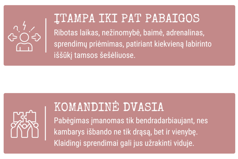 Įžengę į prakeiktą labirintą turėsite įveikti užduotis, įminti mįsles ir surasti kodą, kuris vienintelis gali atrakinti vartus į laisvę. Tačiau būkite atsargūs – jus lydės ne tik paslaptys, bet ir čia įstrigusios sielos. Kai kurios padės… o kitos padarys viską, kad sutrukdytų.